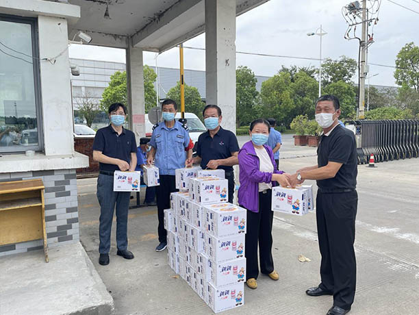 在万吨公司疫情防控点,集团公司党委沈明贵书记将八宝粥送到了工作人员手中,并叮嘱大家一定要在做好疫情防控工作、保障服务的同时,加强自身防护,注意劳逸集合,保护自身安全,并鼓励一线工作人员保持积极向上的乐观精神,再接再厉,坚决取得疫情防控的最后胜利。