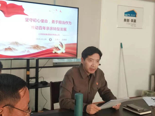 11月20日,江苏亲亲集团股份有限公司党委结合“不忘初心、牢记使命”主题教育,集团公司党委书记沈明贵同志以《坚守初心使命,勇于担当作为 推动百年亲亲转型发展》为题,为集团公司和各子公司党员干部讲了一堂生动的党课。